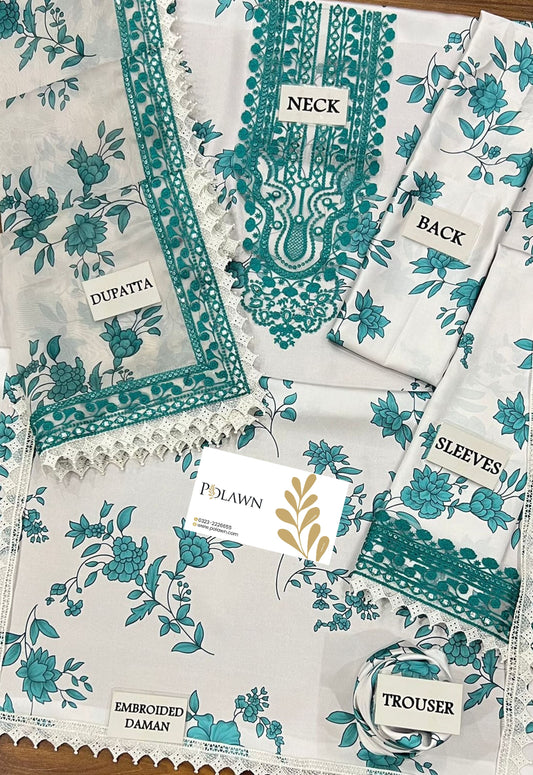 Embroidered Lawn 3 Piece Unstitched Suit GREEN LAWN-ACL-WPR-23 - Summer Collection