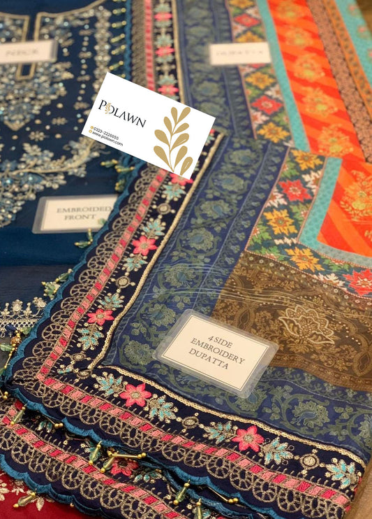 Blue Embroidered Unstitched 3 Piece Chiffon Suit MBC-BD-2407-22-Party Wear
