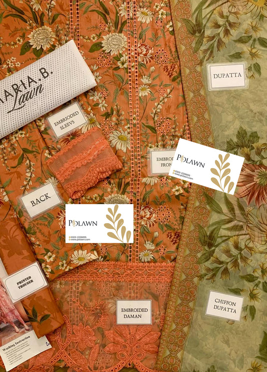 Embroidered Lawn 3 Piece Unstitched Suit MBL-MPT-2508-A-25 - Summer Collection