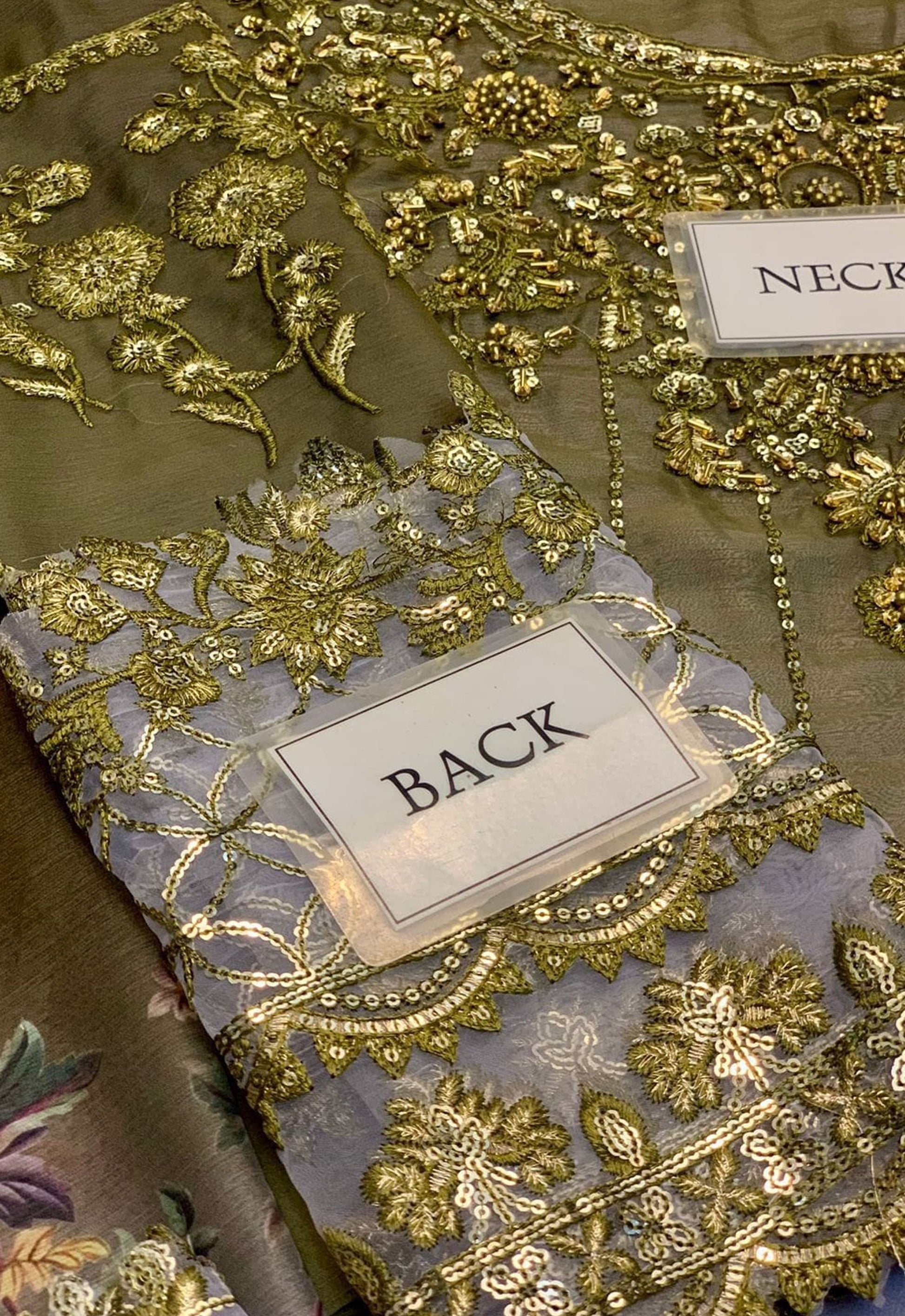 - Chiffon tie & die fully heavy alternate embroidered spangle work front with fully hand embellishment adha work with heavy embroidered spangle work daman border with fancy tulses attach