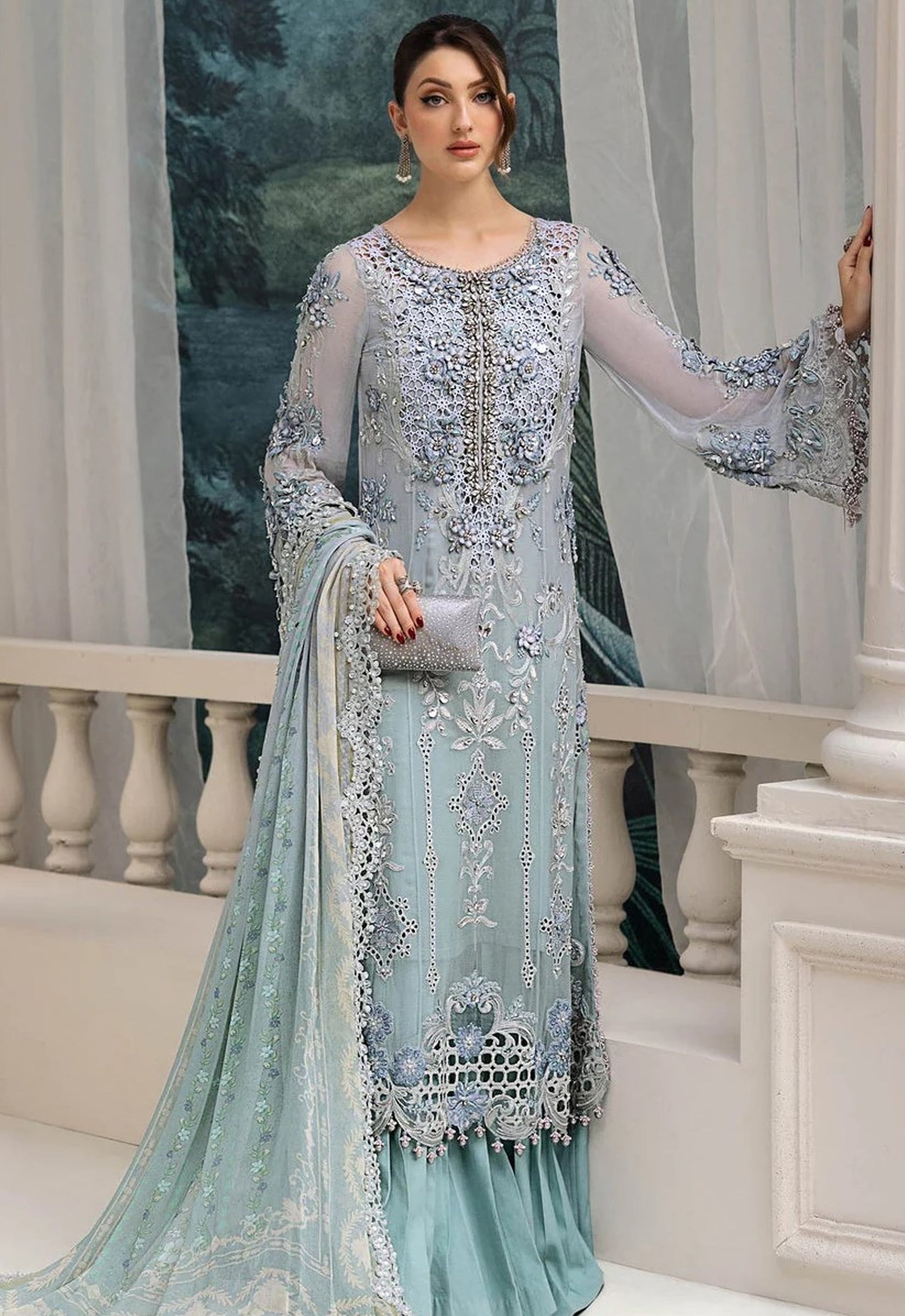 - Chiffon digital printed dupatta with 4 side heavy embroidered spangle work border attach with fully beats work