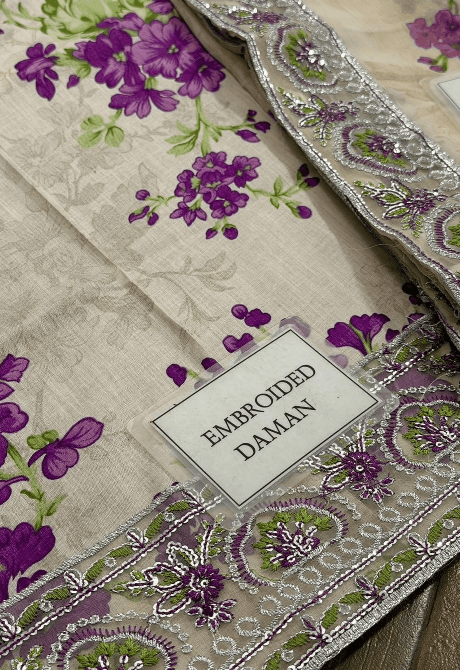 - Printed lawn sleeves with heavy embroidered spangle work sleeves border