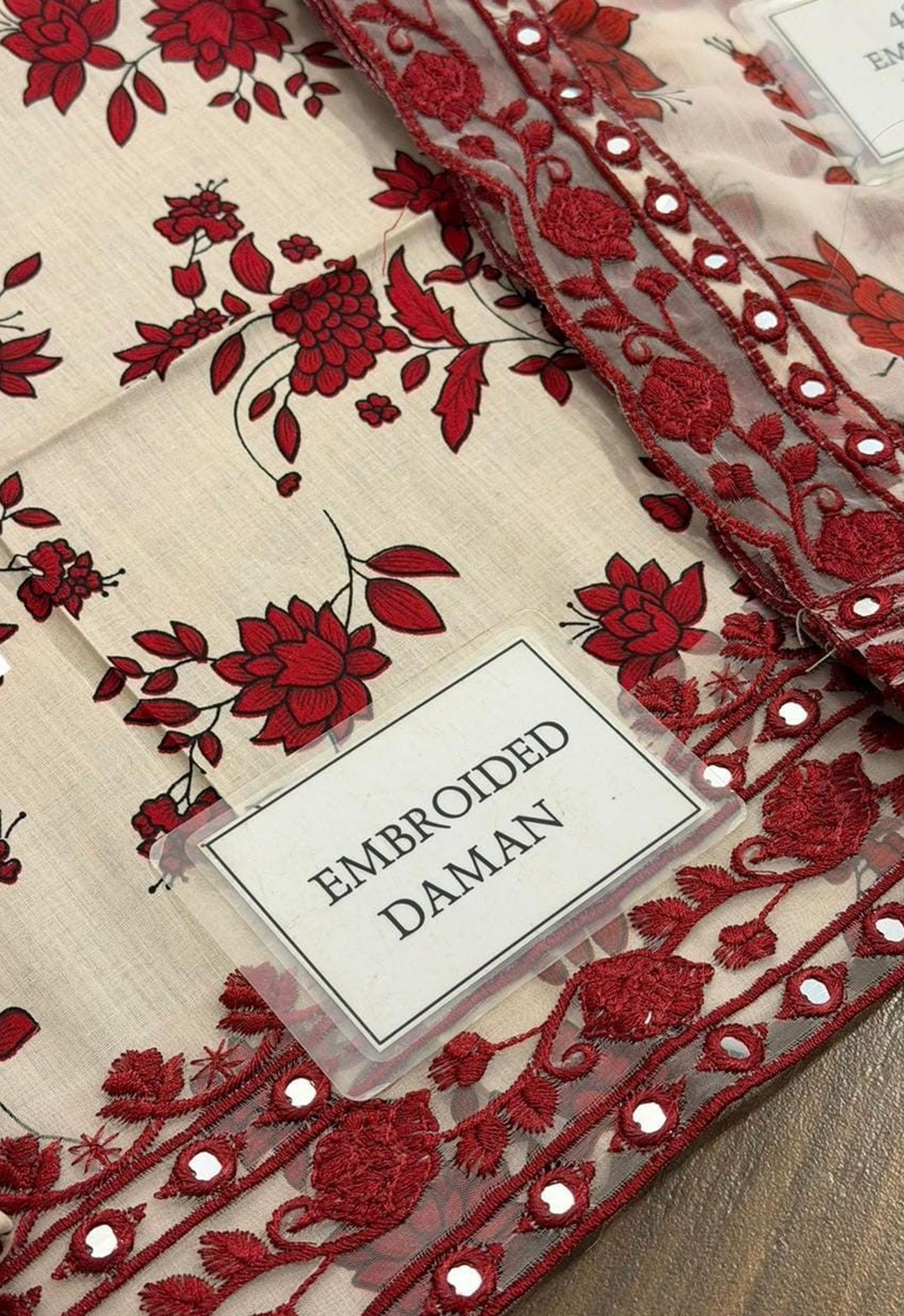 Embroidered Lawn 3 Piece Unstitched Suit MAROON LAWN-ACL-WPR-23 - Summer Collection