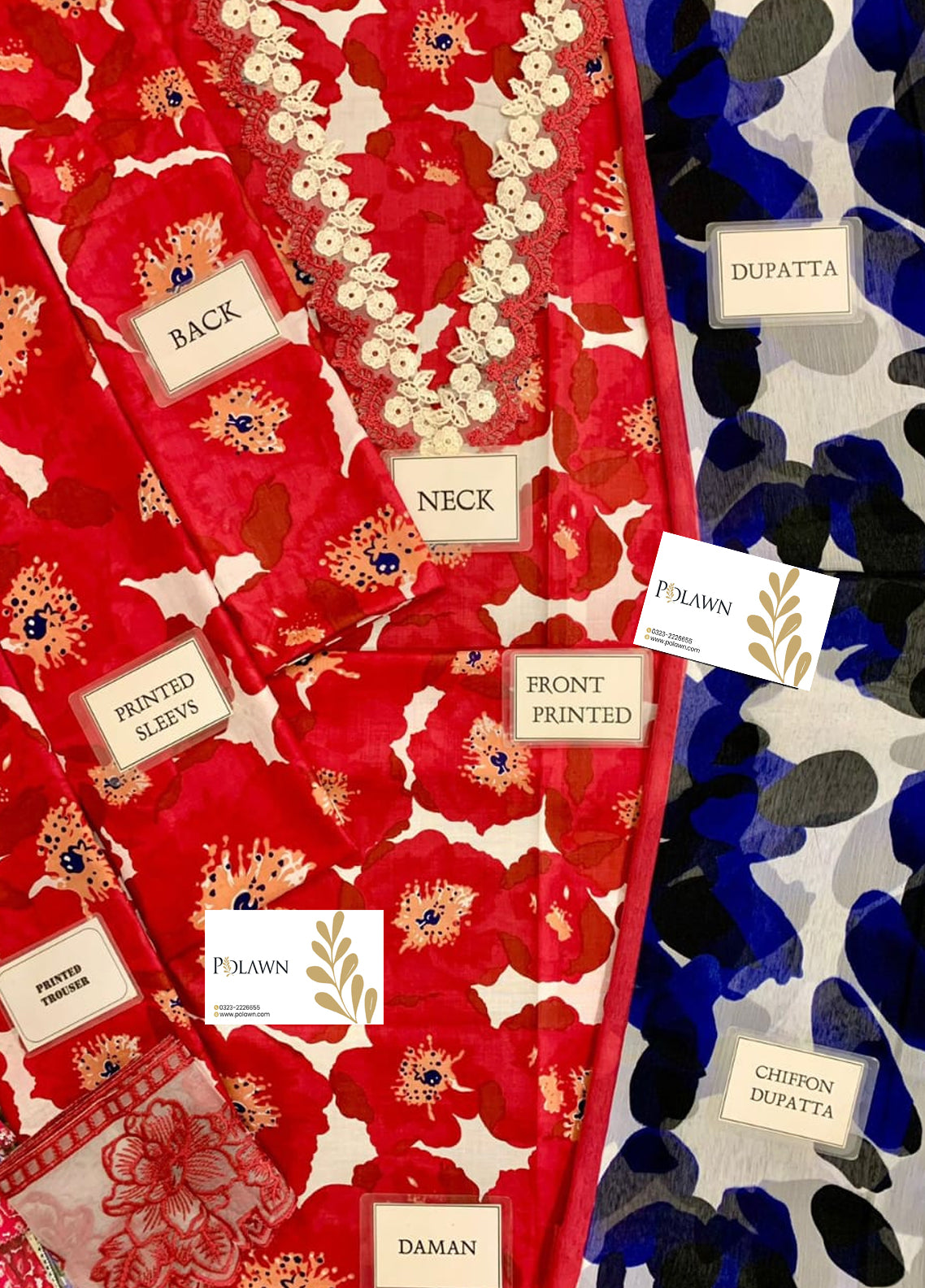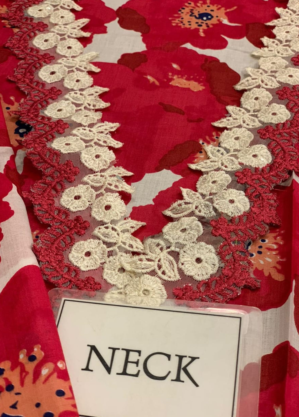 - Printed lawn front with heavy embroidered spangle work neckline