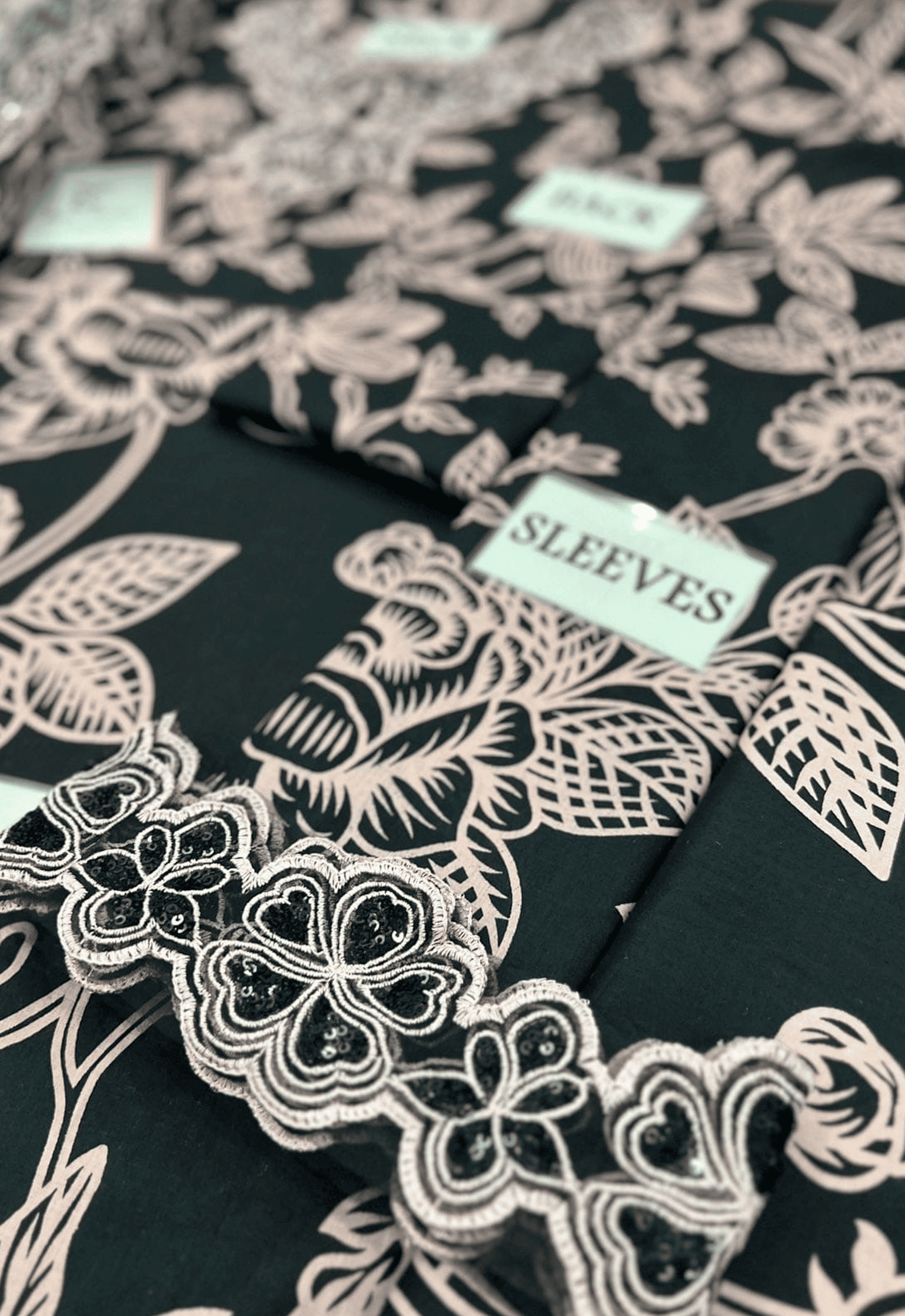 - Printed lawn sleeves with heavy embroidered spangle work sleeves border