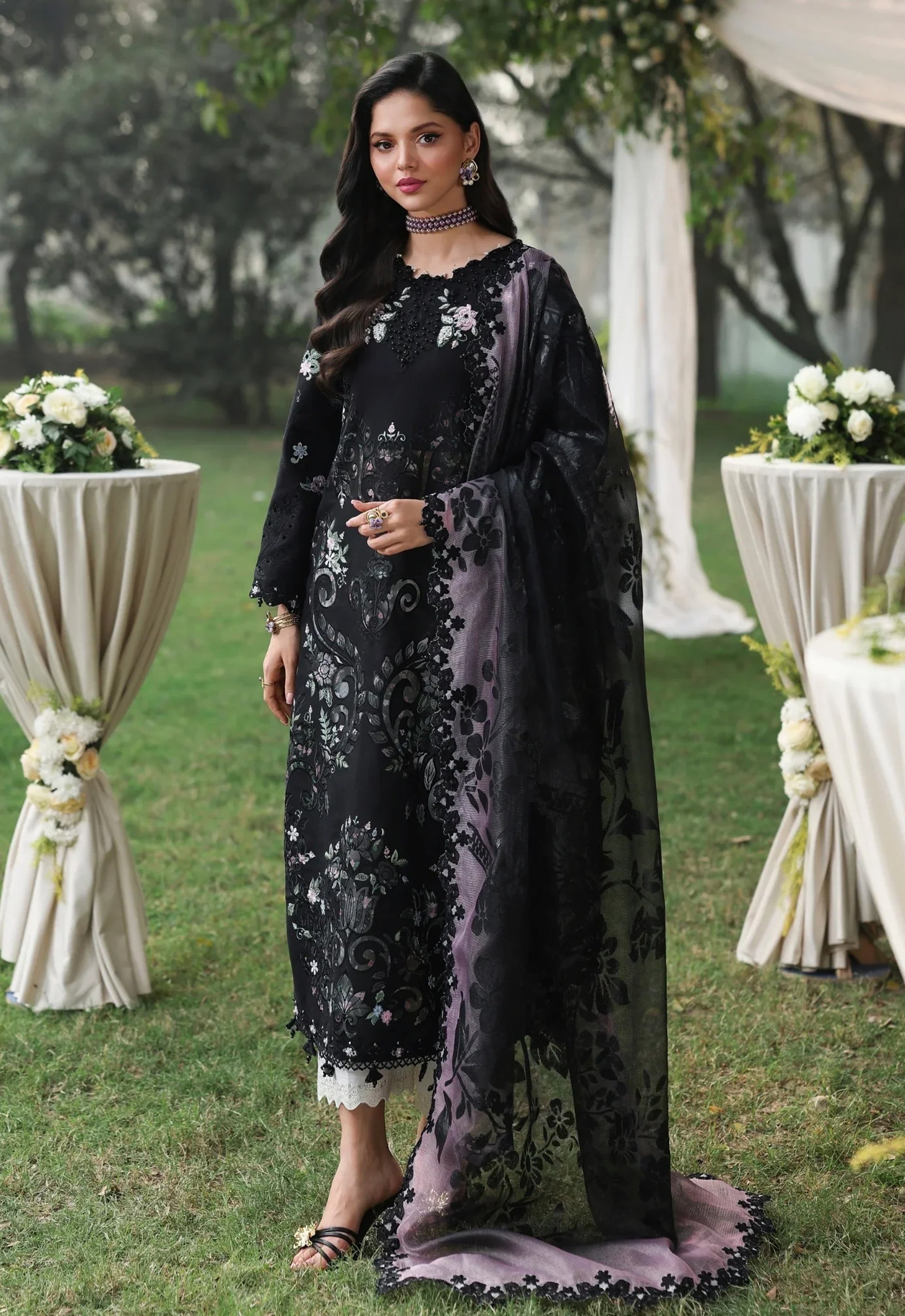 Embroidered Lawn 3 Piece Unstitched Suit SL-HU-MIDNIGHT BLOOM - Summer Collection