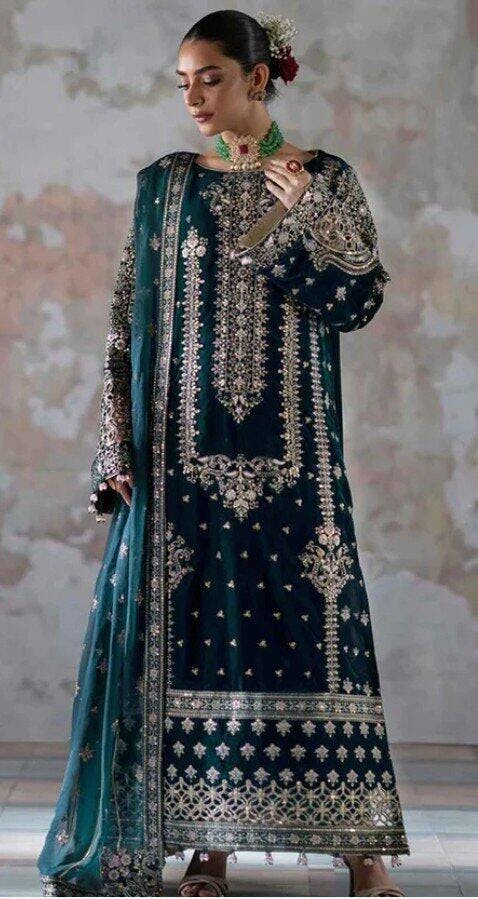 Embroidered Unstitched 3 Piece Velvet Suit EAV-MEHER-24 - Party Wear