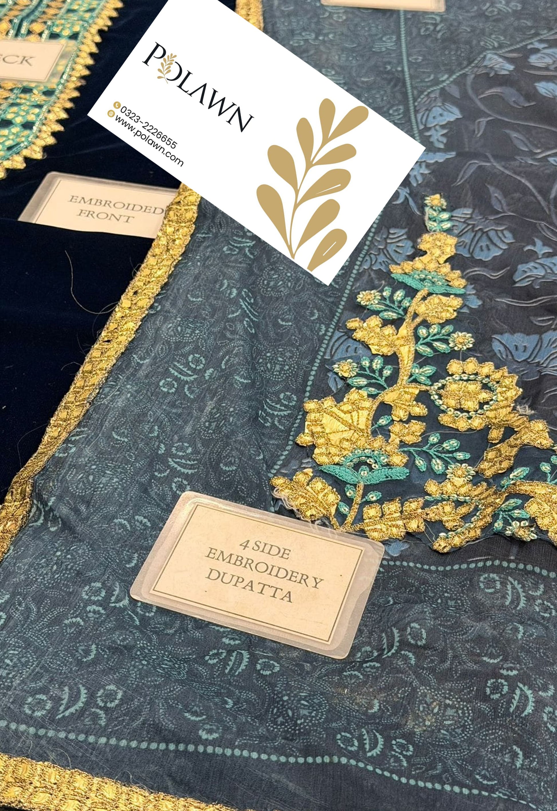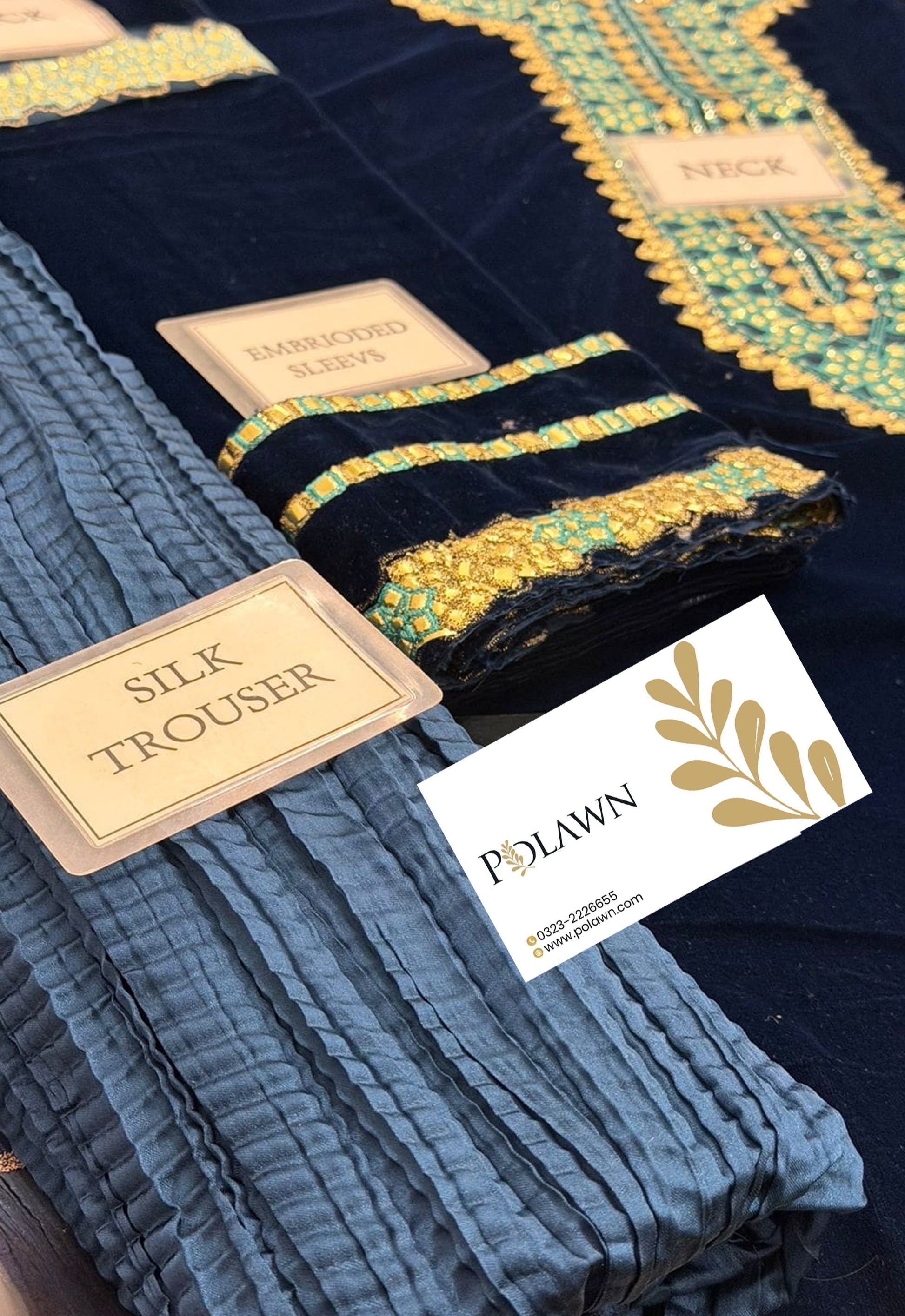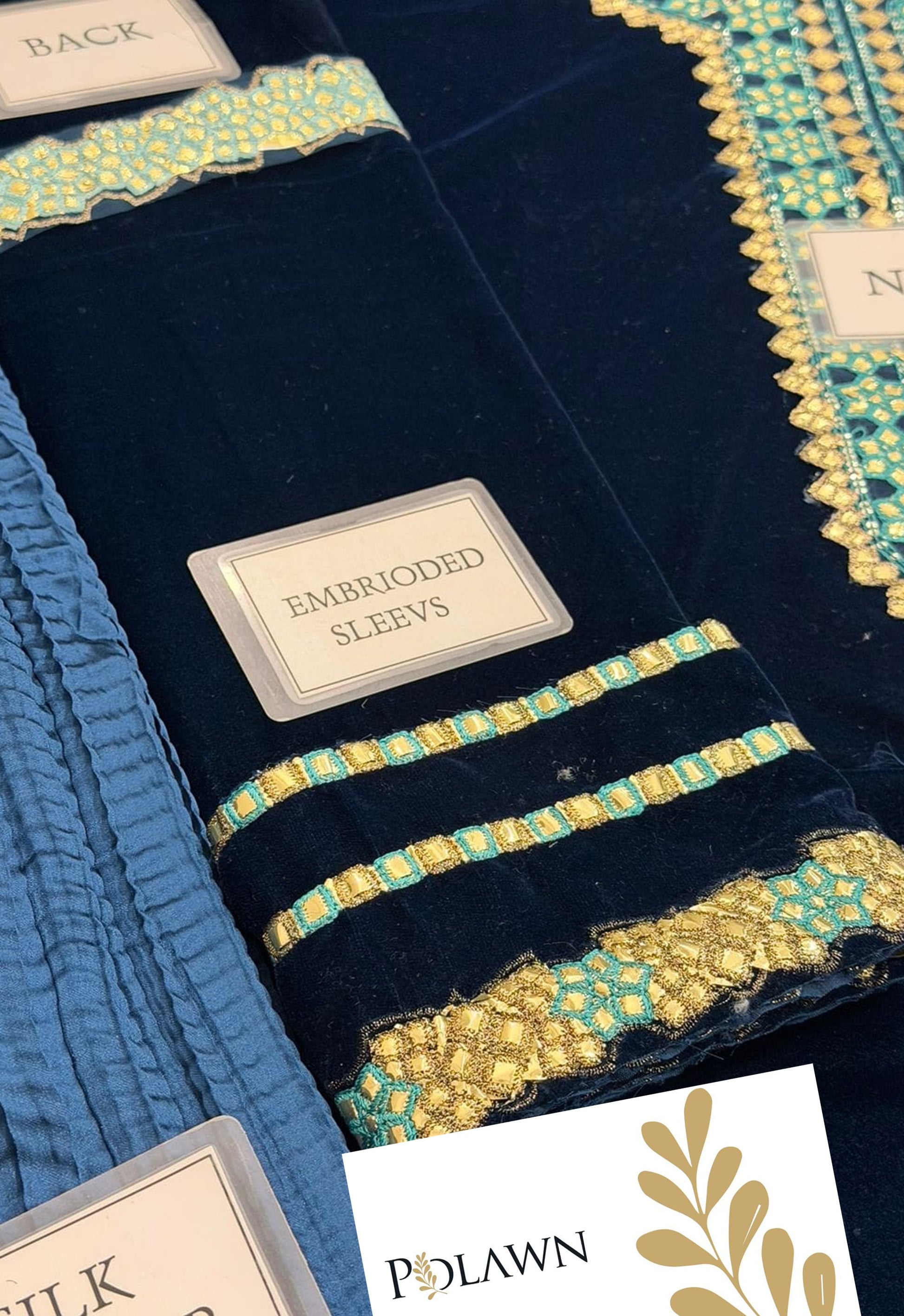 Embroidered Unstitched 3 Piece Velvet Suit IV-64-25 - Party Wear