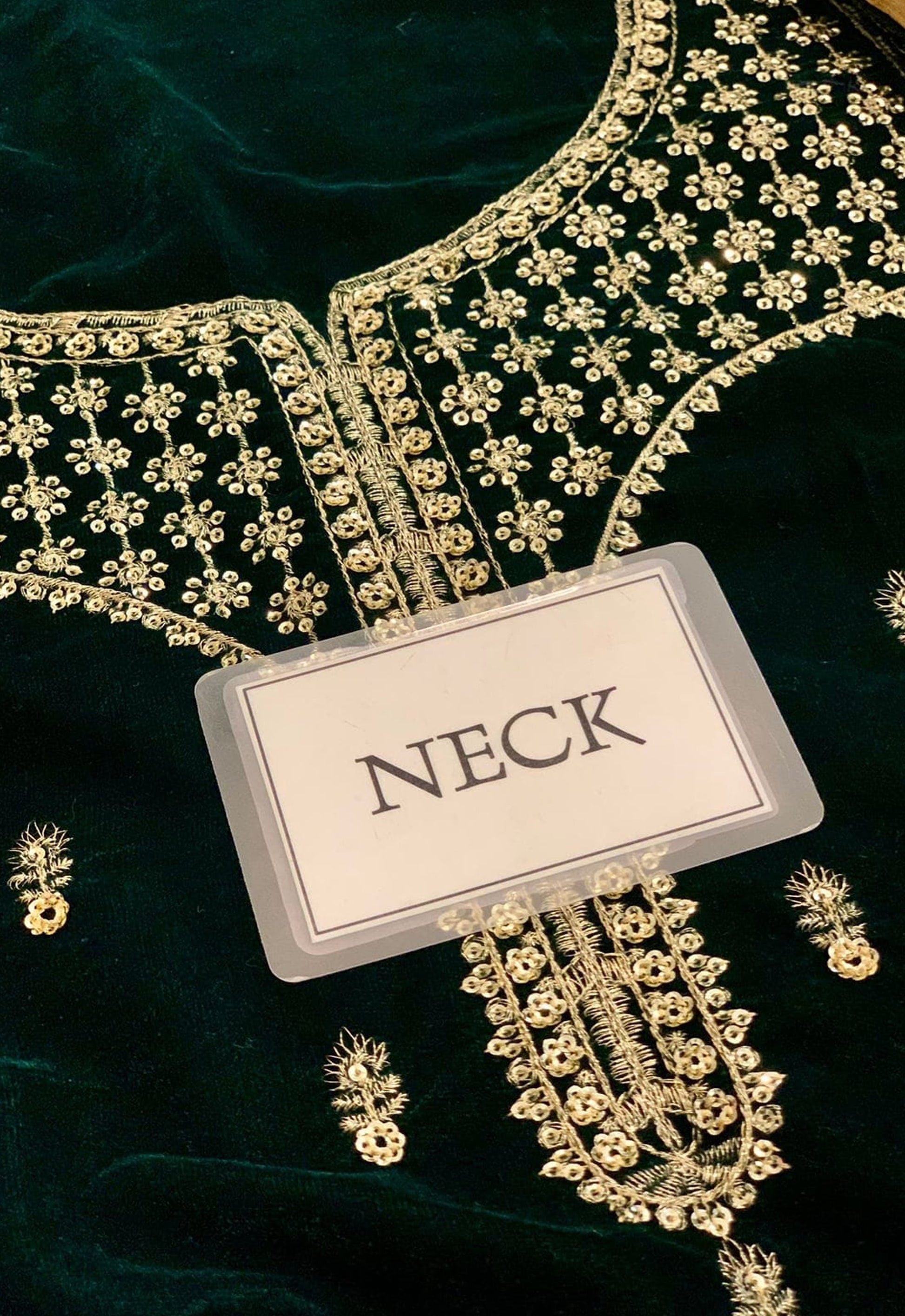 - Velvet fully heavy embroidered spangle work centre panel with fully heavy embroidered spangle work left & right panel attach with velvet embroidered spangle work daman border