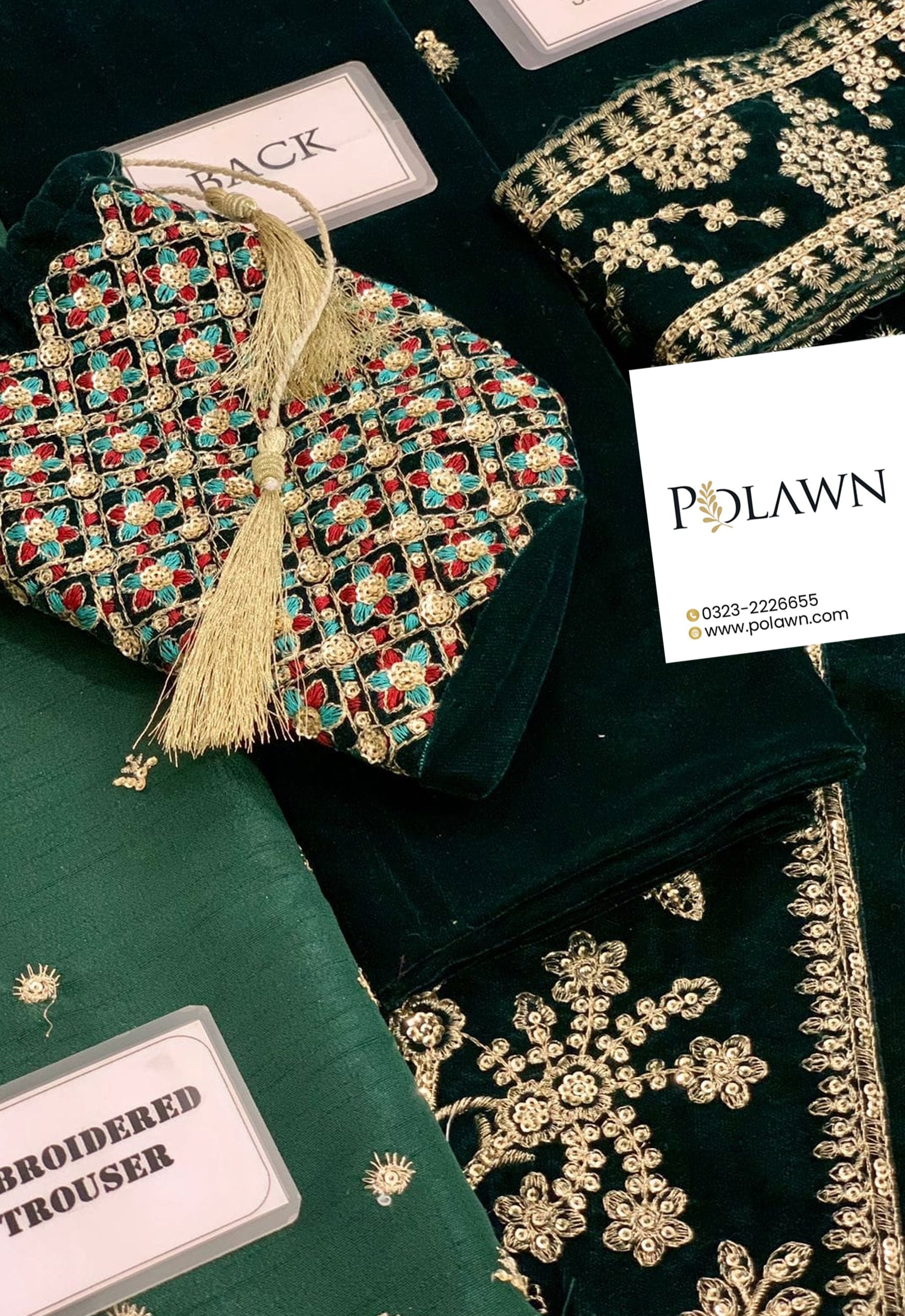 Embroidered Unstitched 3 Piece Velvet Suit JV-CVF-D01-25 - Party Wear