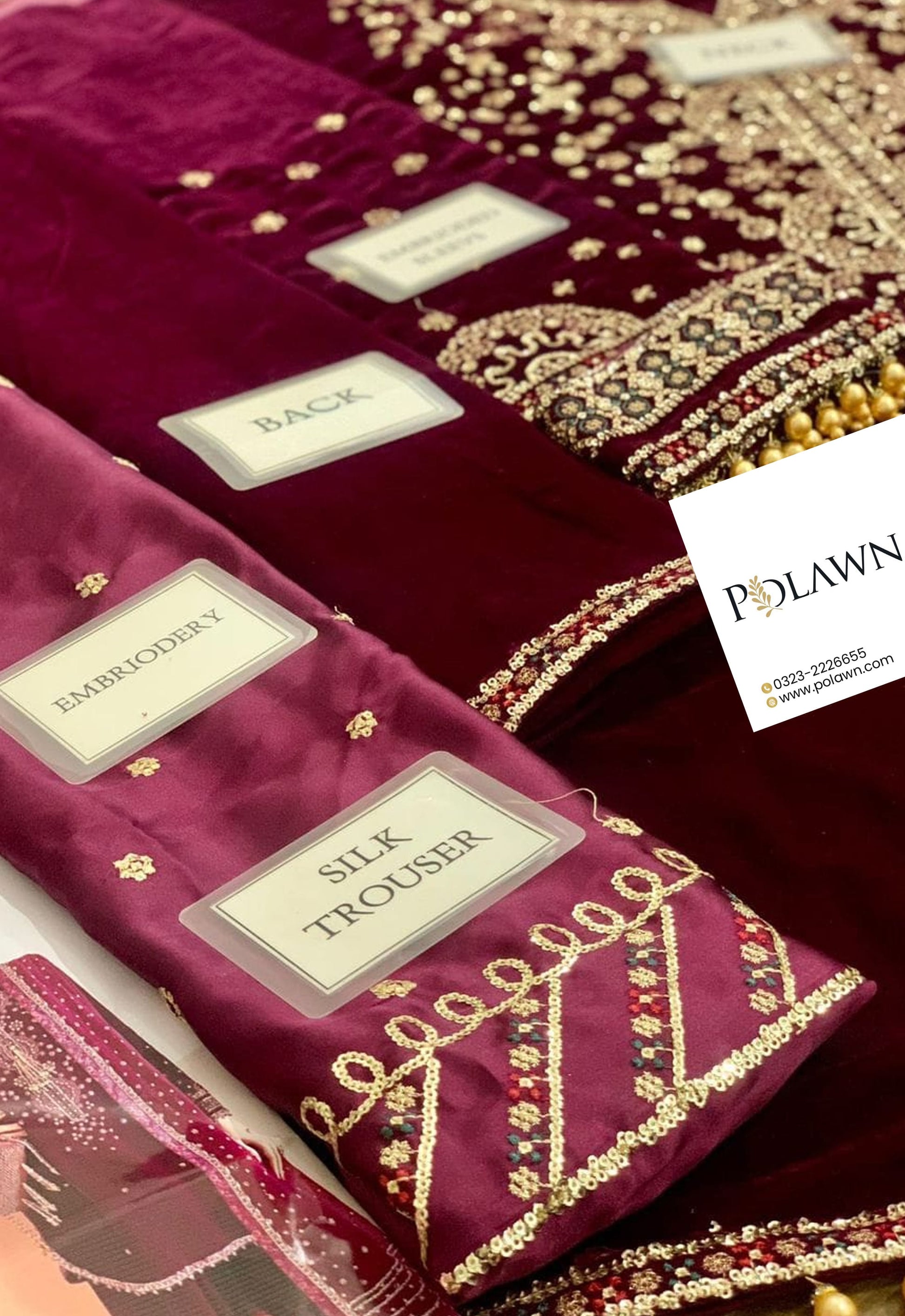 Embroidered Unstitched 3 Piece Velvet Suit JV-CVF-D05-25 - Party Wear