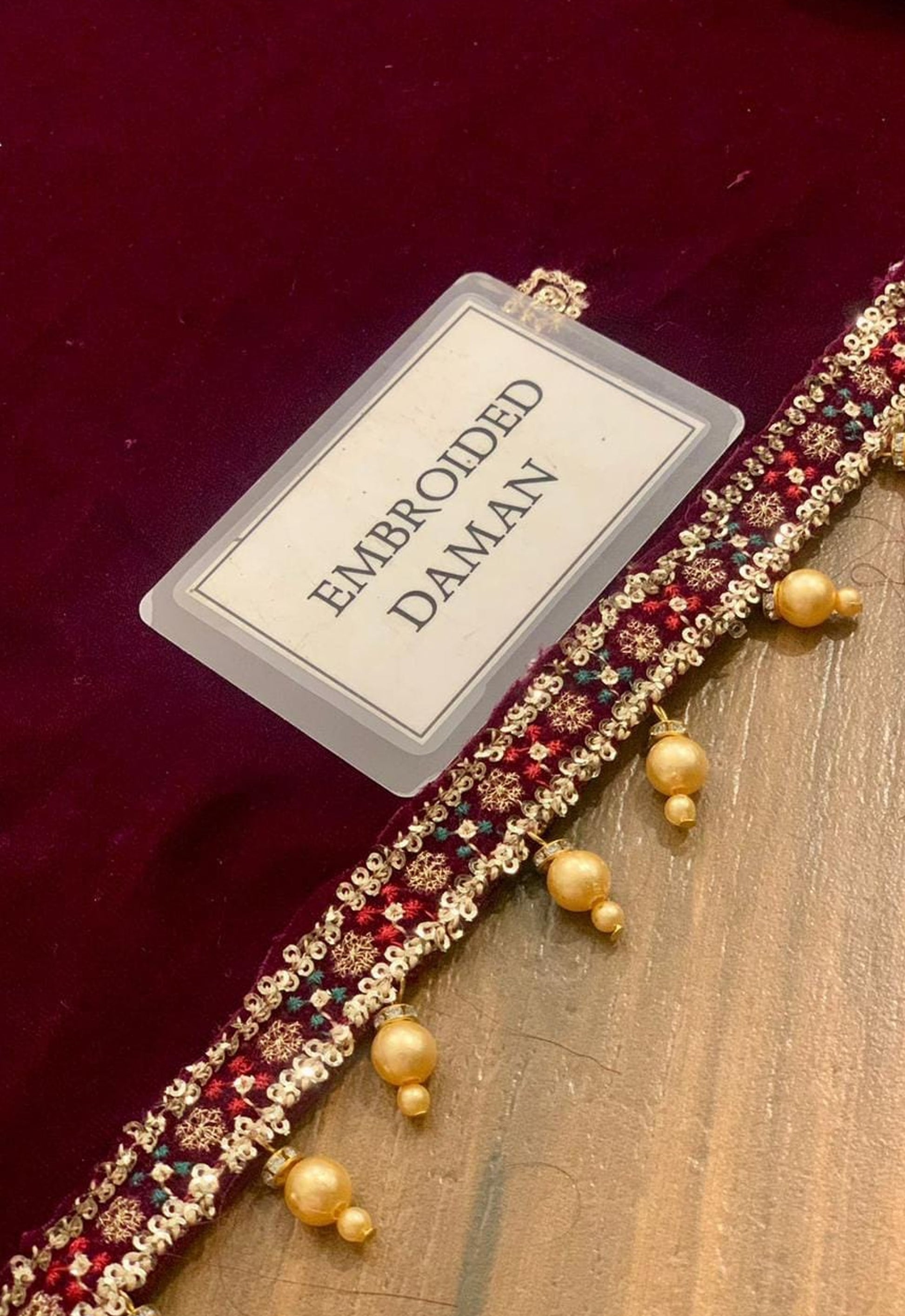 - Velvet fully heavy alternate embroidered spangle work front with velvet embroidered spangle work daman lace with fancy tulses attach with velvet embroidered spangle work chak lace