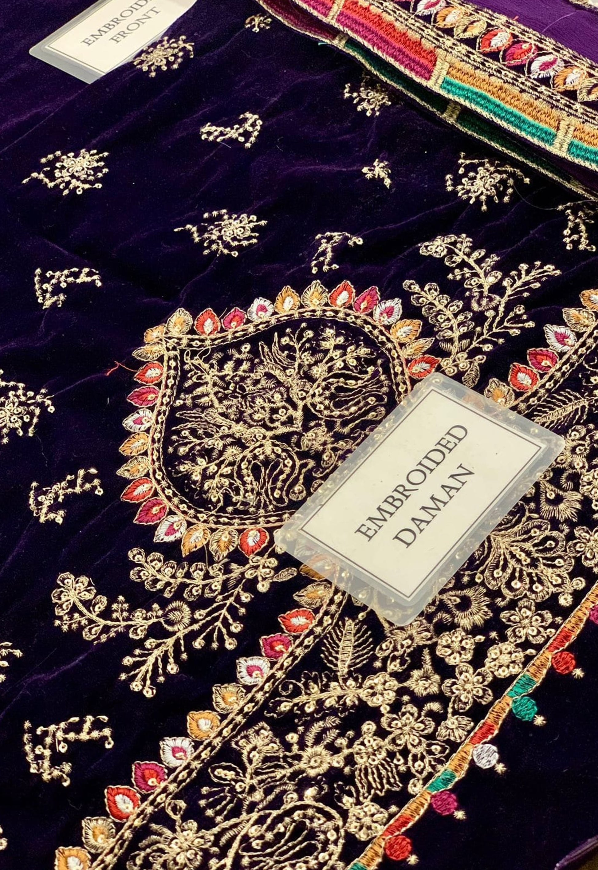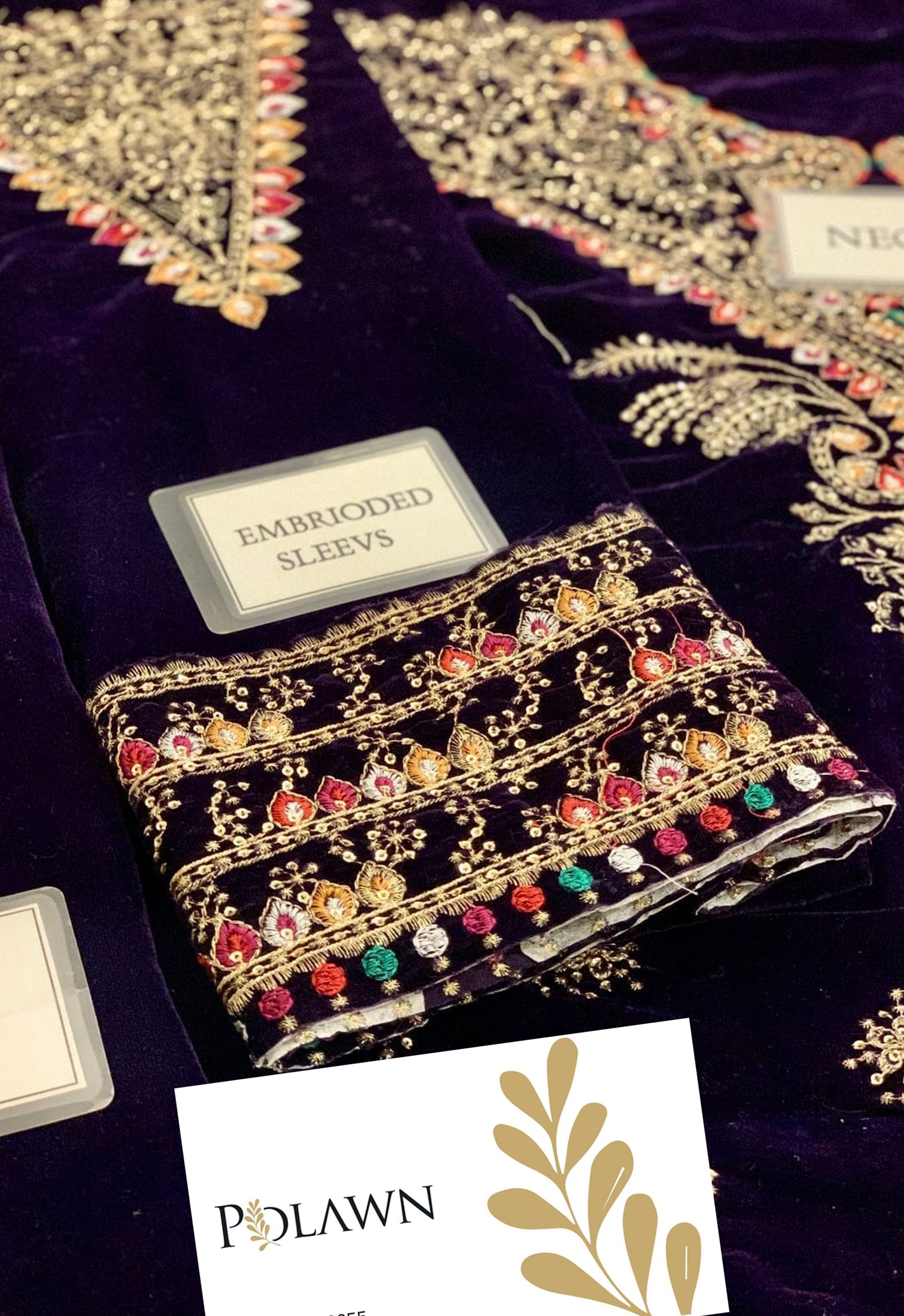 - Velvet fully alternate embroidered spangle work sleeves with heavy embroidered spangle work sleeves border