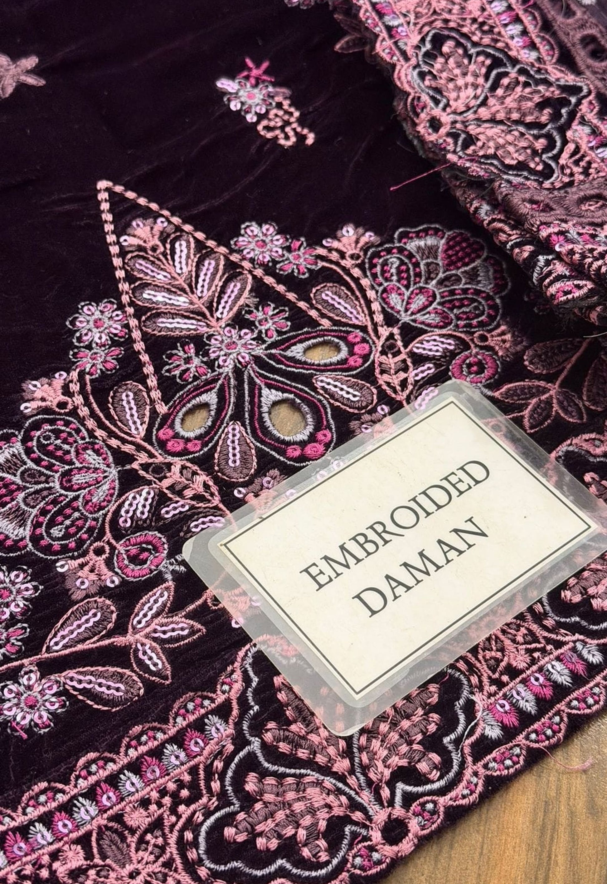 - Velvet fully heavy embroidered spangle work centre panel front with fully heavy embroidered spangle work right & left panel attach with embroidered spangle work daman border
