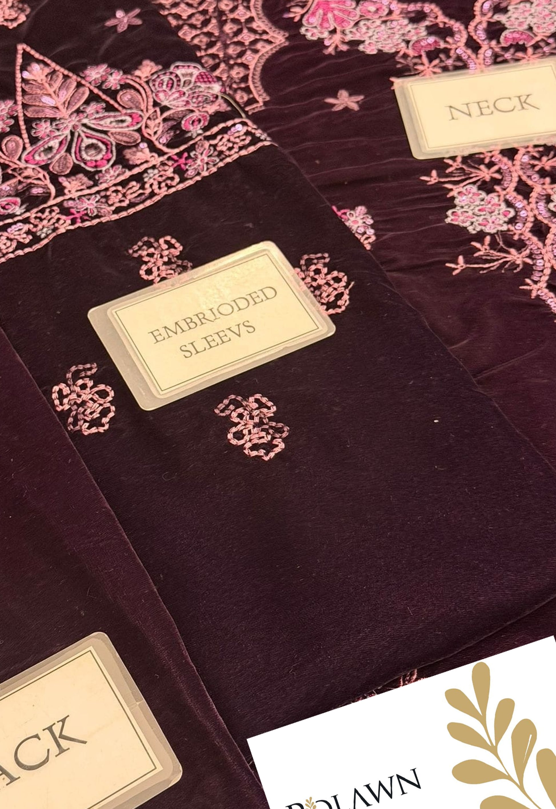 Embroidered Unstitched 3 Piece Velvet Suit NV-NE-198 - Party Wear
