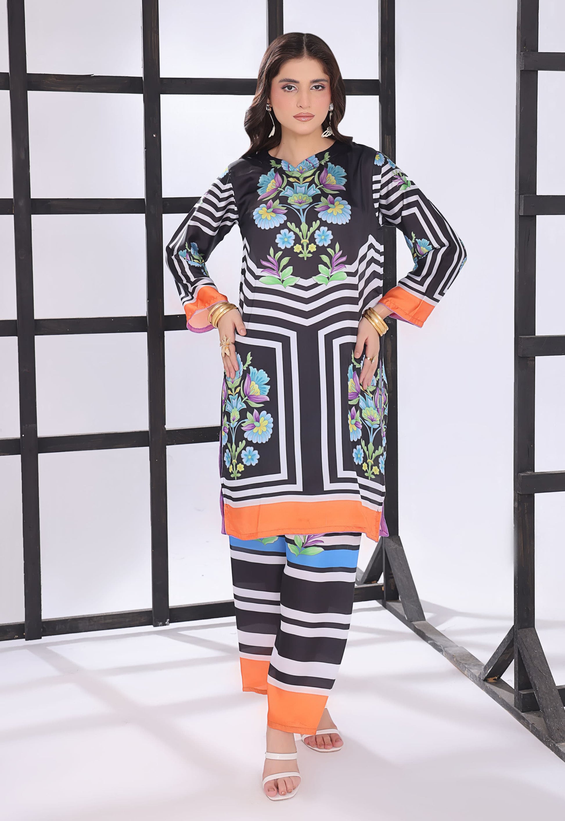 Polawn Printed Stitched 2 Piece Chamuse Silk Suit PB-CHAMUSE-109 - Basic Pret